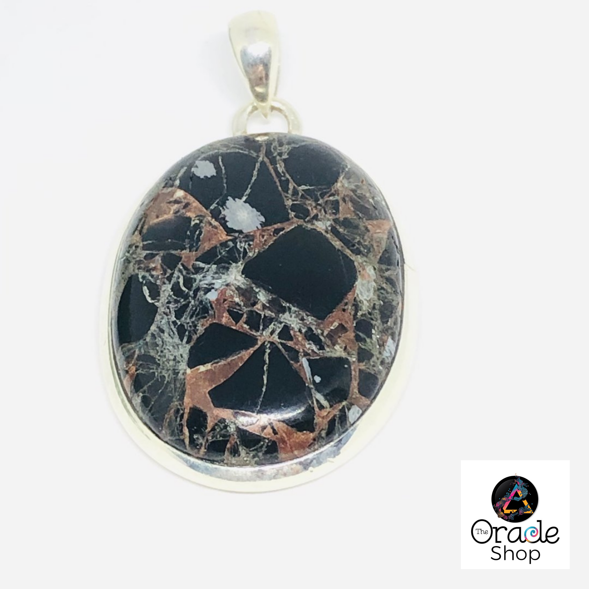 Crafted with a stunning black Mohave stone, this pendant adds a touch of sophistication and elegance to any outfit. The unique stone, known for its healing properties, makes this pendant not only a beautiful accessory, but also a functional one. Your wardrobe will thank you.