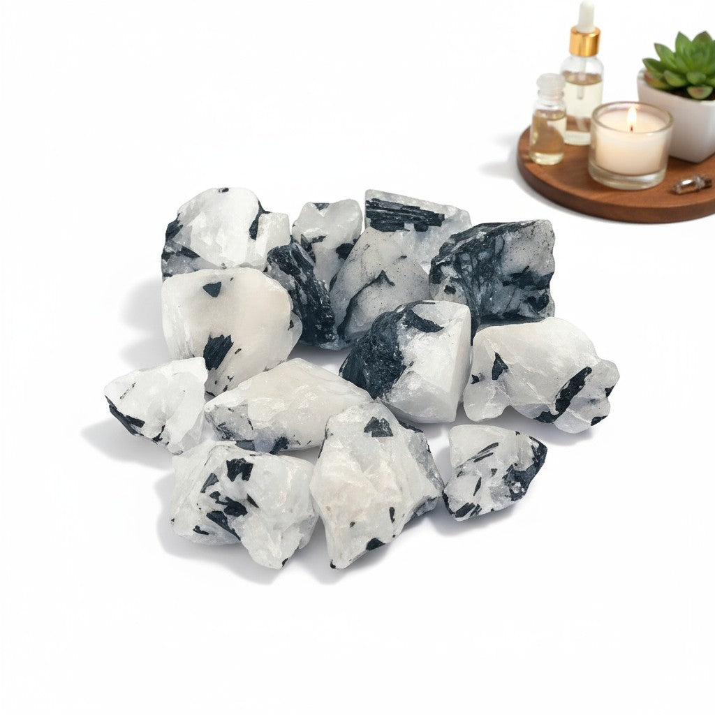 Harness the ultimate protective duo with this stunning Black Tourmaline in Clear Quartz rough specimen! Black Tourmaline acts as your spiritual bodyguard, shielding you from negative vibes and unwanted energies while promoting grounding and healing across all levels—physical, emotional, mental, and spiritual. Paired with Clear Quartz, the legendary Master Healer, this combo amplifies clarity of thought and brings balance to mind, body, and spirit. Perfect for meditation, energy work, or creating a positivity-boosting focal point in any space. Let this Brazilian beauty remind you that good vibes are always within reach. Approximately 50-60gms per piece.