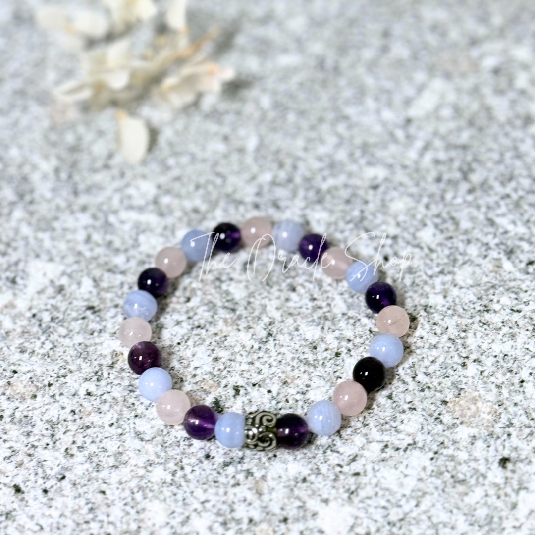 Add some uplifting vibes to your aura with our Blue Lace/Rose Quartz/Amethyst & S/S Bead Bracelet. Featuring beautiful stones in shades of blue, pink, and purple, this bracelet will bring a playful touch to any outfit. Made with high-quality materials, it's both stylish and durable. Beautifully Gift Boxed.