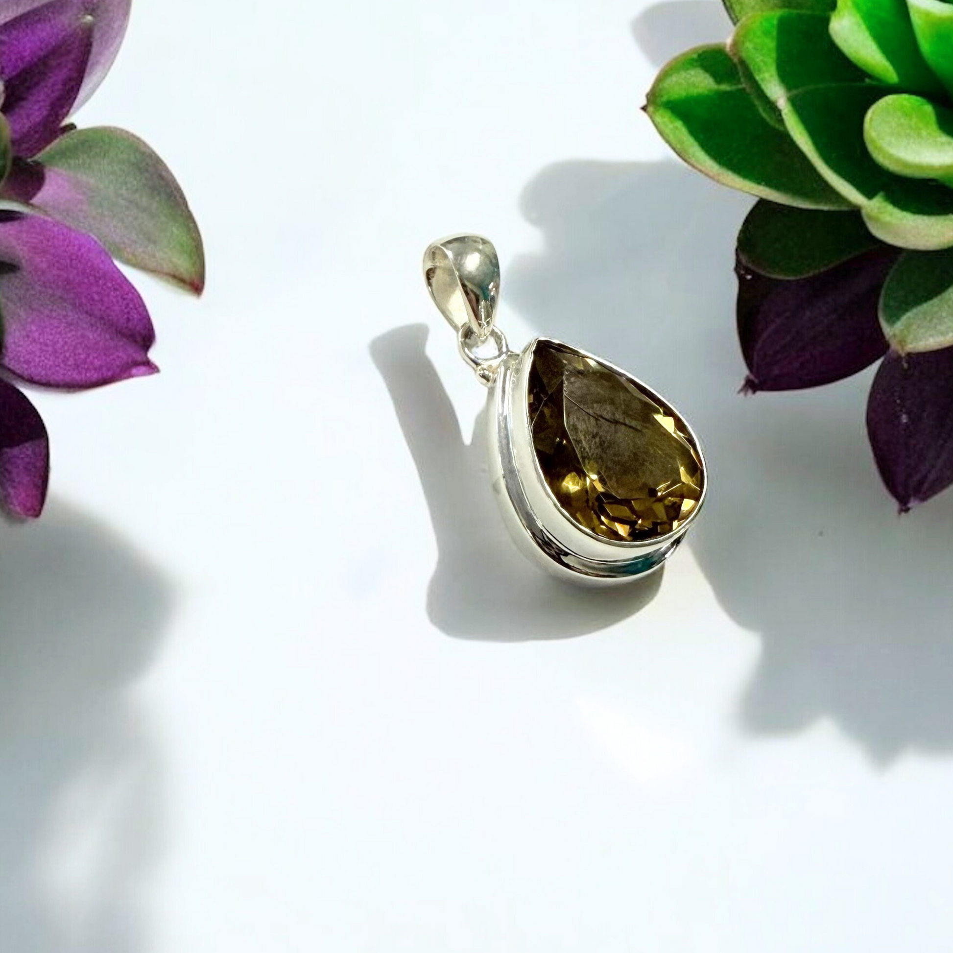 Expertly crafted, this Citrine Teardrop Faceted Silver Pendant exudes elegance and sophistication. Featuring a unique teardrop shape and faceted design, this pendant showcases the natural beauty of Citrine gemstone. The silver setting adds a touch of modernity, making it the perfect accessory for any occasion.