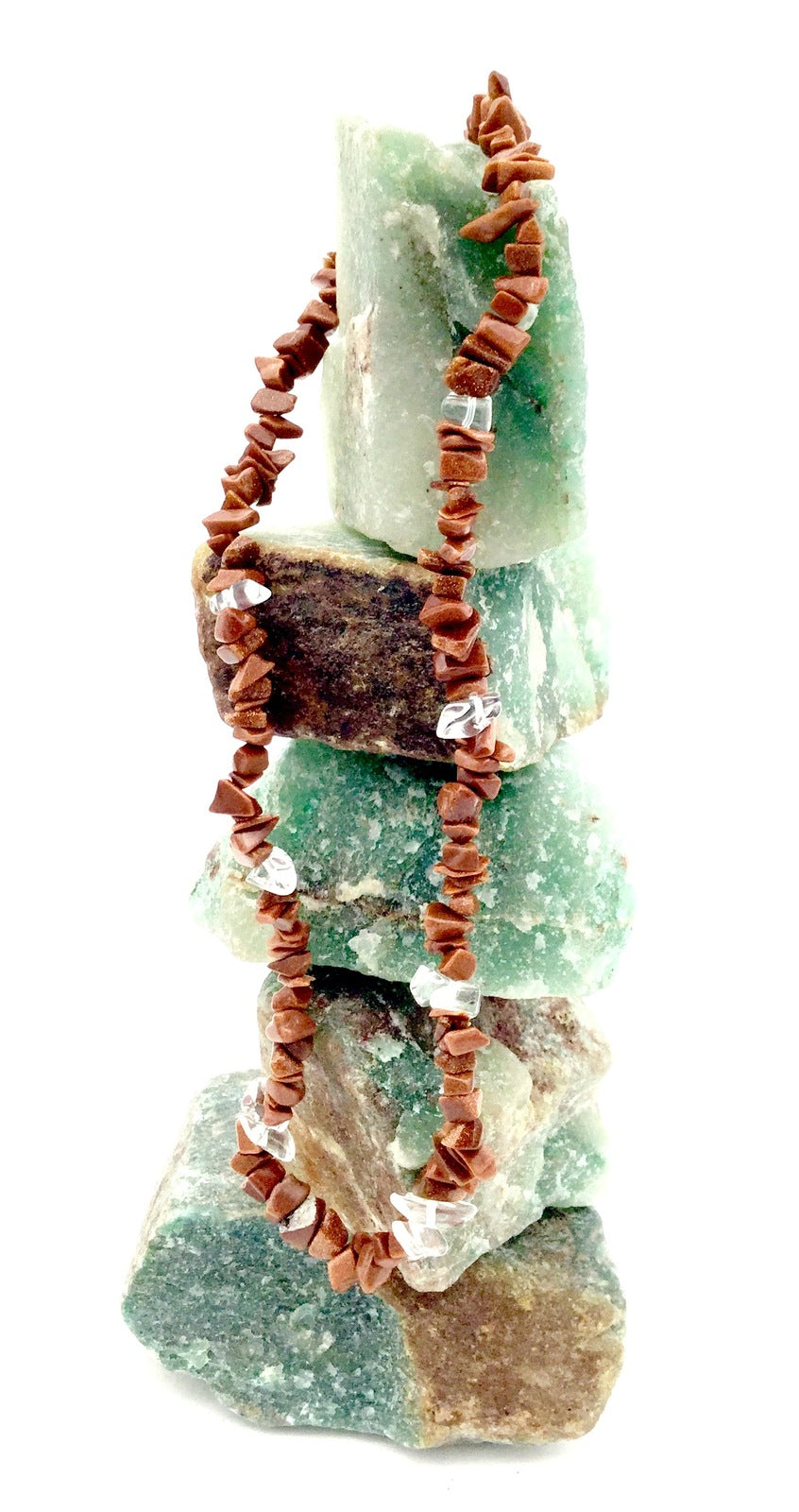 Crystal Chip Combination Necklace CLEAR QUARTZ & GOLDSTONE