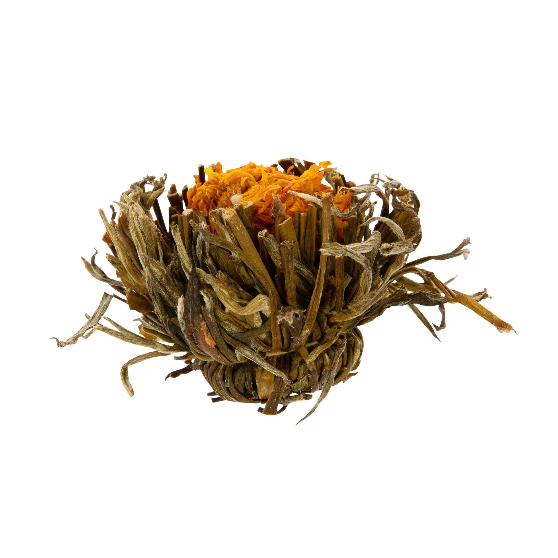 This blooming artisan crafted tea ball is made of the highest grade special green tea of fresh spring crops and natural herb flowers.