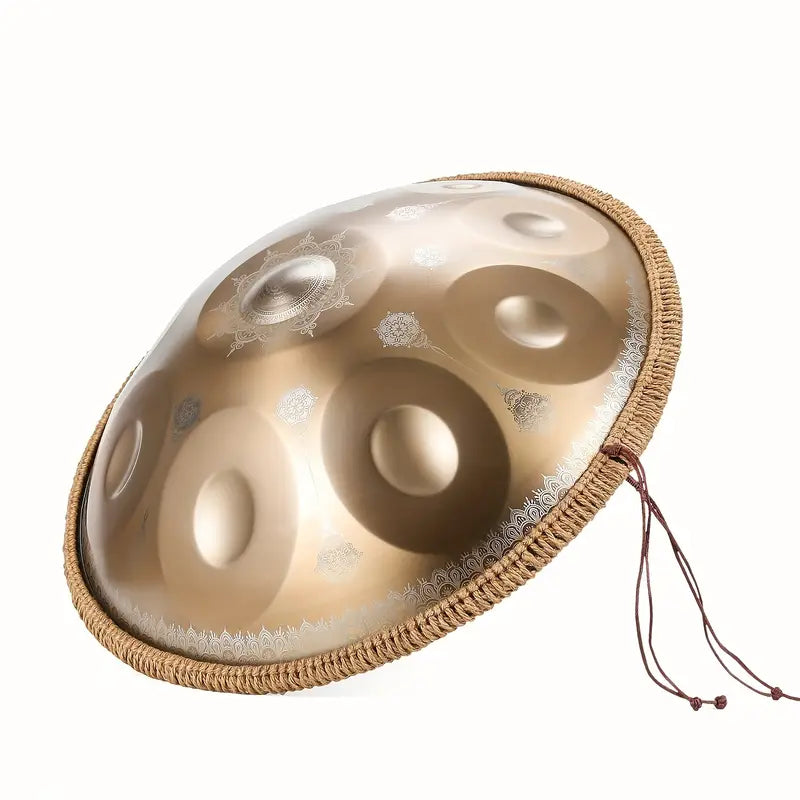 55.88cm Golden Handpan Drum - 10-Note Stainless Steel Percussion Instrument with Mandala Design, Includes Carry Bag, Mallets & Accessories - Perfect for Yoga, Music Hobbyists & Performances, Performance Percussion | Mandala Pattern Drum | Hand-pounded Notes, Drum Accessories