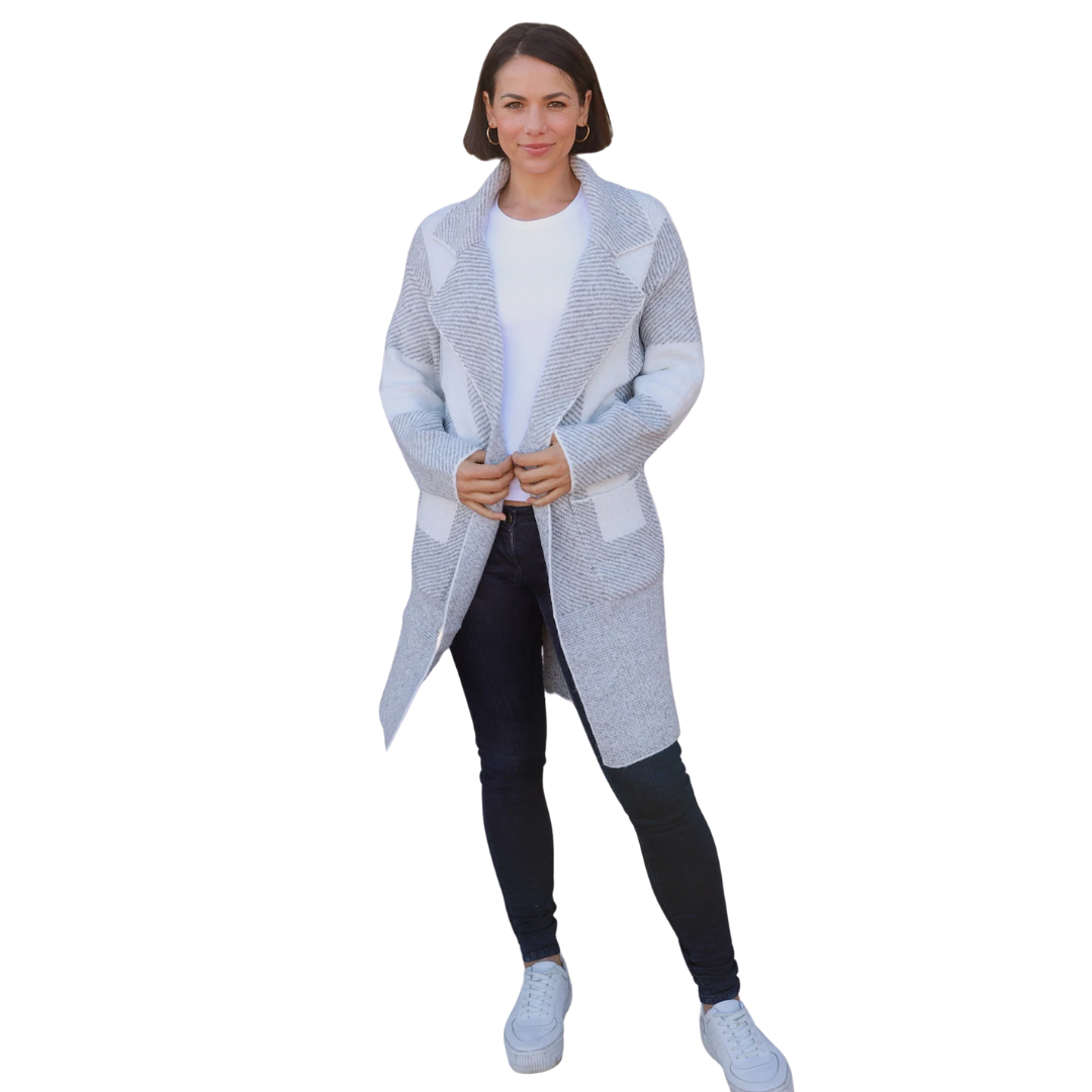 Introducing the Silver Knit Cardigan, aka the ultimate cozy-chic piece. This versatile cardigan boasts a luxurious silver knit that will elevate any outfit. Perfect for layering or wearing on its own for a night out. Plus, it's named after Talia, our favorite fashion-forward gal.