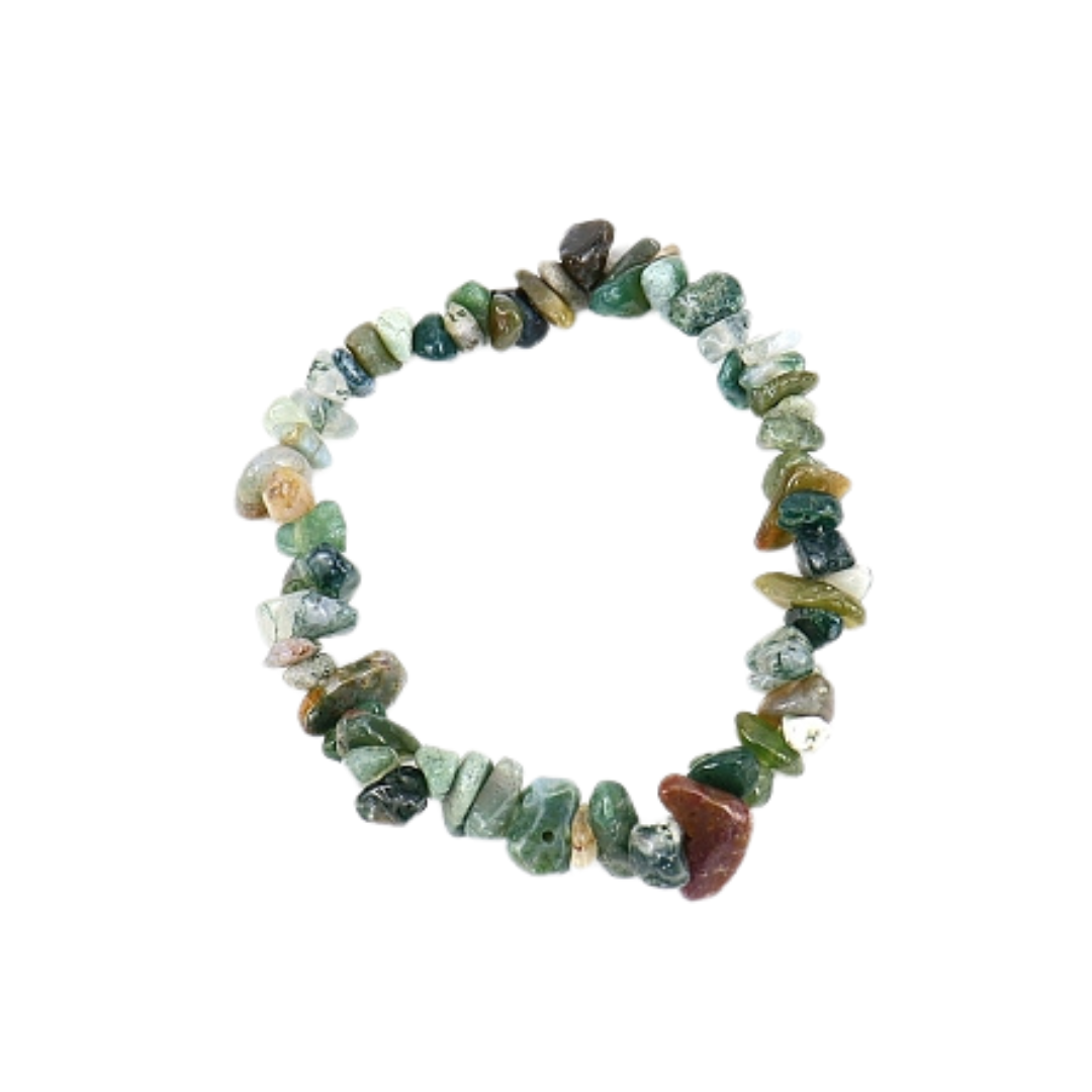 Embrace natural harmony with the Moss Agate Crystal Chip Bracelet. Known for its grounding properties, this bracelet helps promote emotional balance and calmness. Its unique green hues connect you to nature, offering a gentle reminder to stay centered throughout your day. Perfect for daily wear, it supports your journey toward inner peace and well-being.