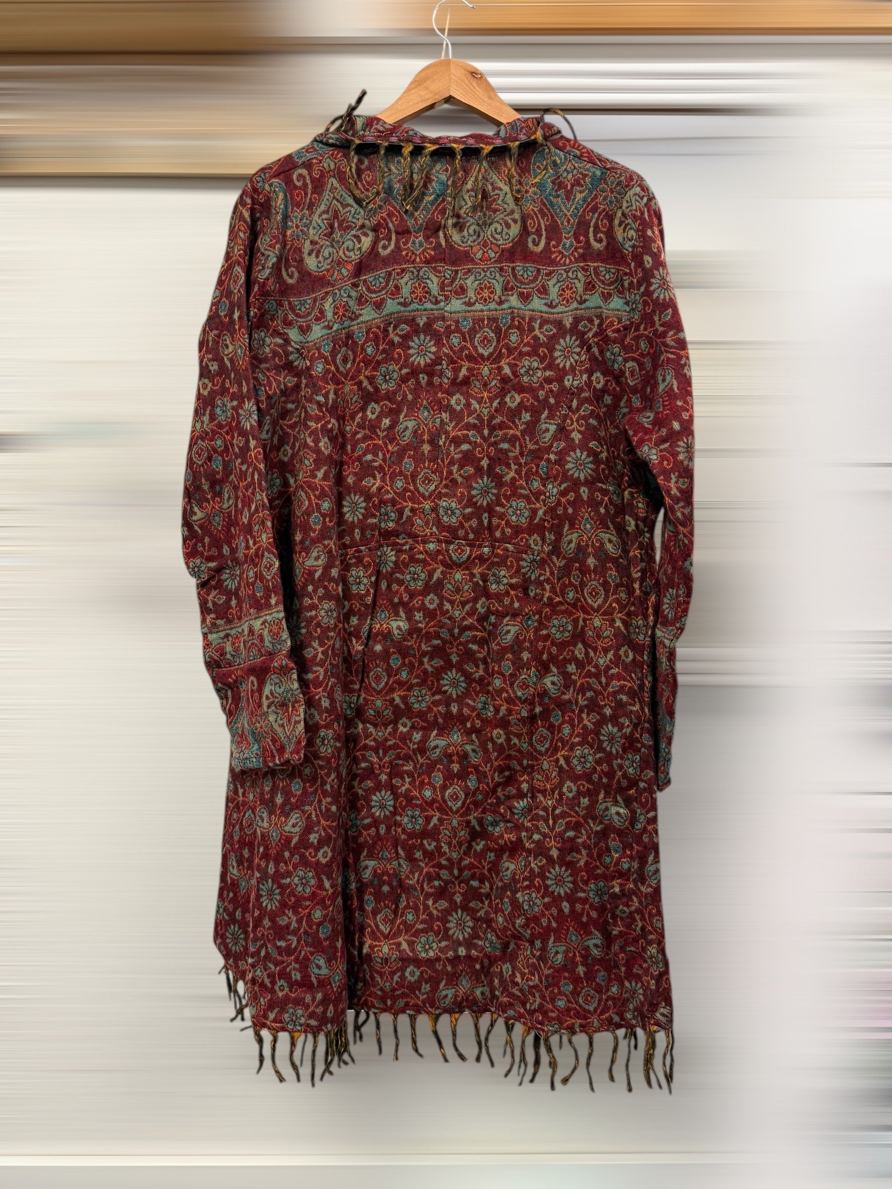 Get ready to elevate your winter wardrobe with this quirky Paisley Wool Long Cardigan Jacket. Made from high-quality wool, this jacket features a unique paisley pattern that will turn heads. With its long length, it provides both warmth and style. Make a statement and stay cozy all season long.