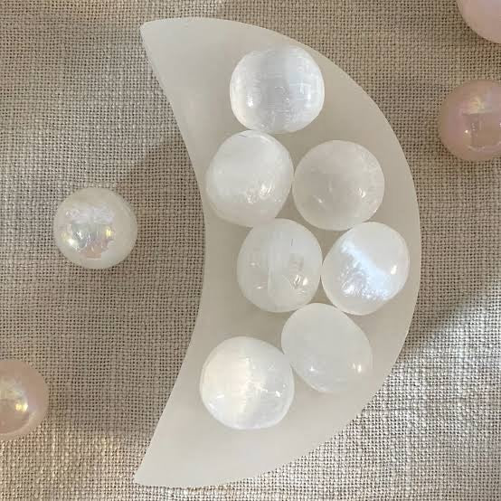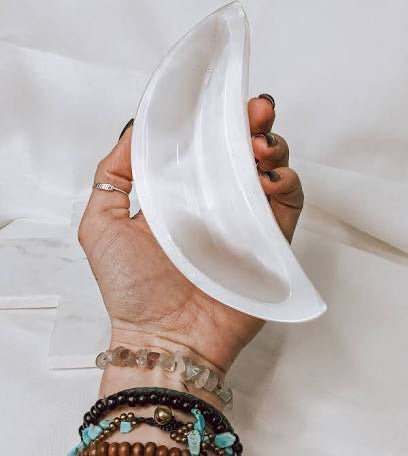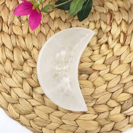 Crafted from selenite, these moon bowls are a must-have for any crystal collector or spiritual enthusiast. Selenite is known for its calming and cleansing properties, making these moon bowls perfect for meditation or keeping negative energy at bay. Enhance your space with the enchanting glow and energy of selenite.