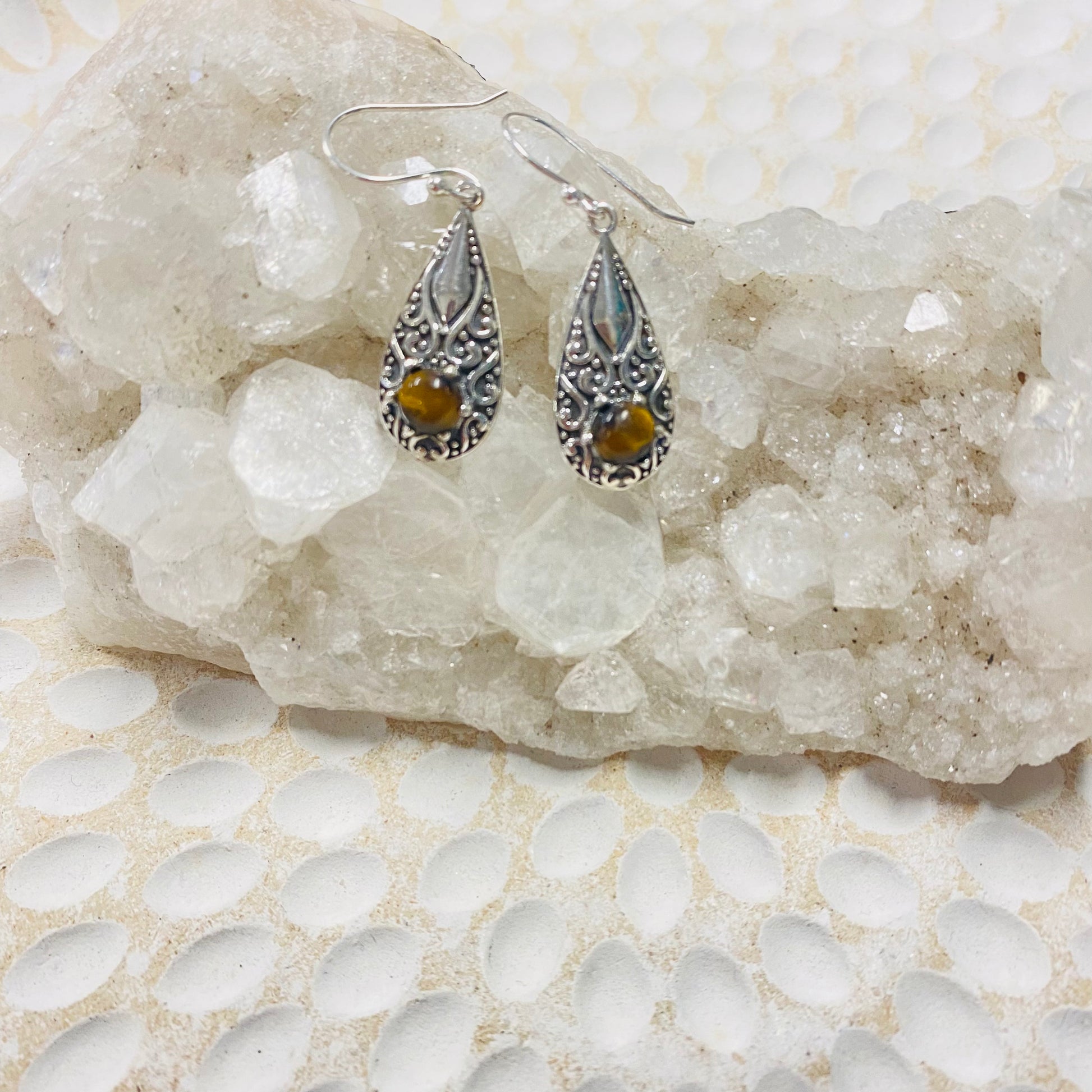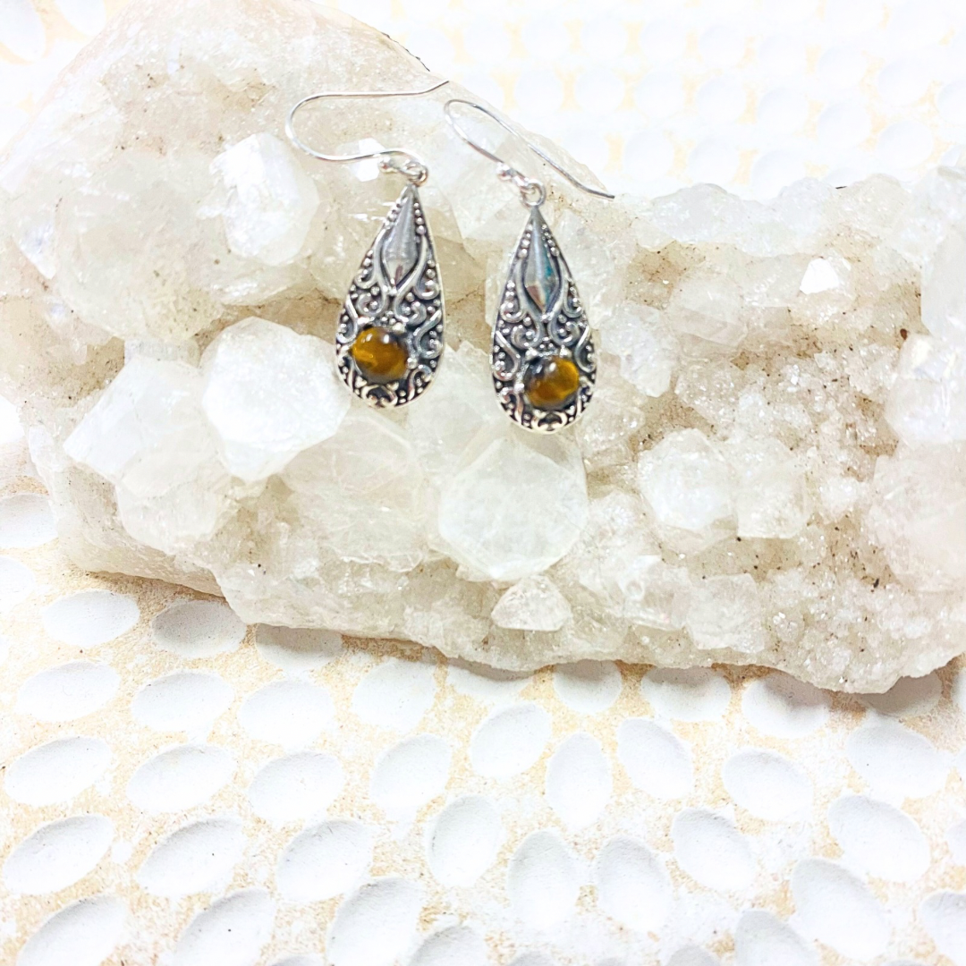 These Tiger Eye Earrings in silver combine natural beauty with elegant design. The warm, earthy tones of tiger eye stones are beautifully set in sleek silver, offering a timeless accessory that complements any outfit. Lightweight and comfortable, they are perfect for daily wear or special occasions, adding a subtle touch of confidence and style.