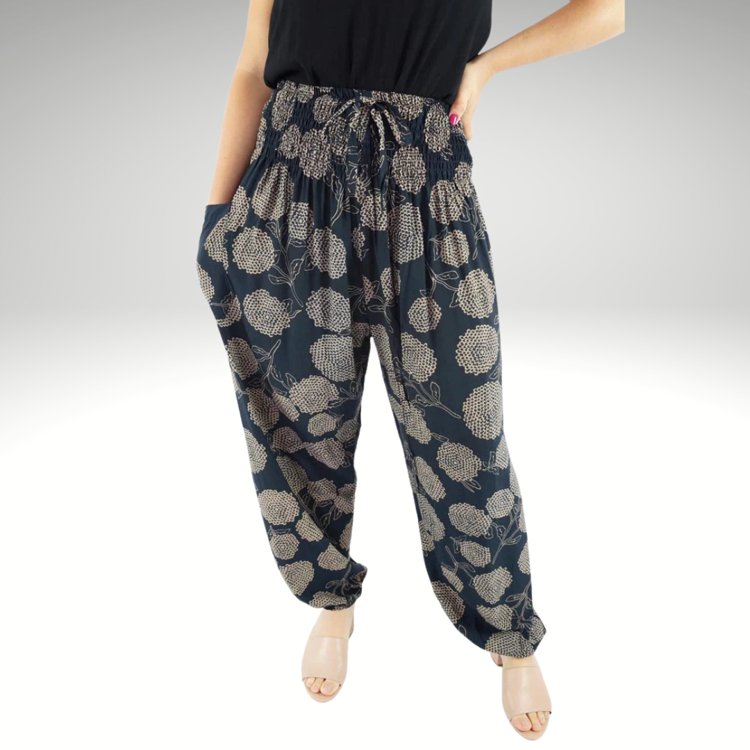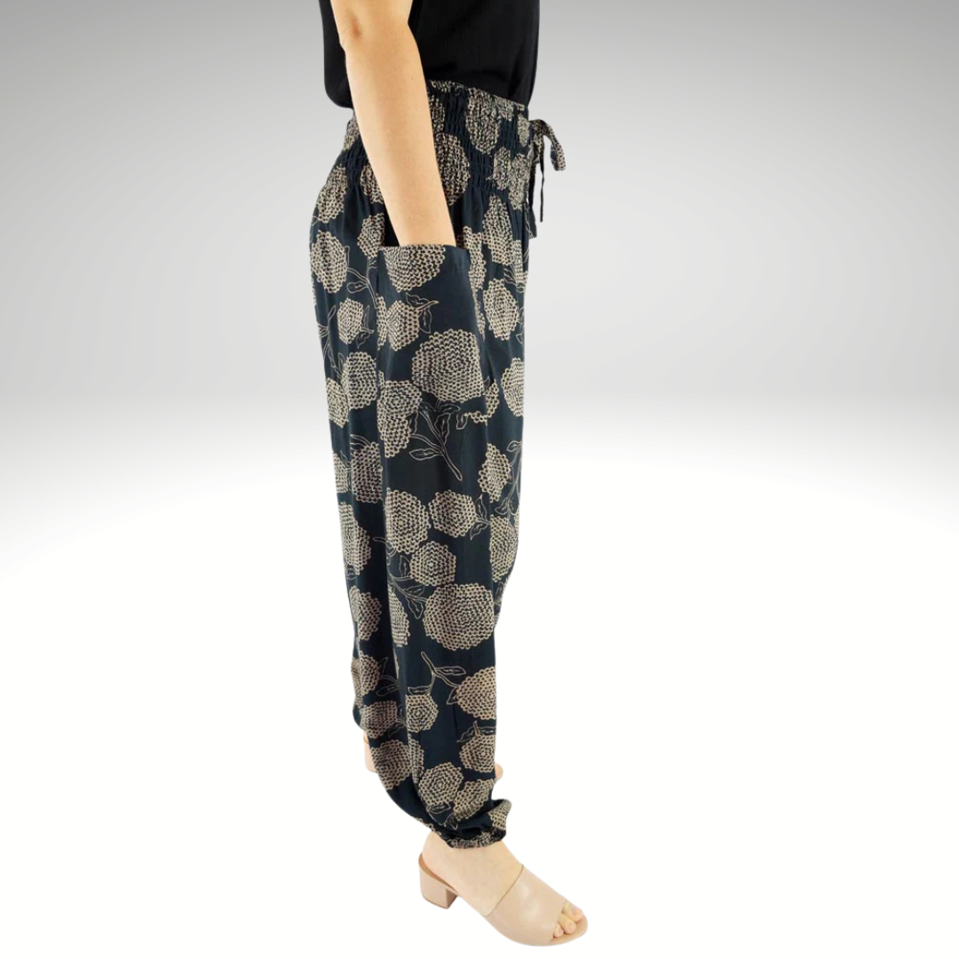 Experience comfort and style with the Harem Marigold Pants in Black. Designed for ease of movement, these pants feature a relaxed fit and lightweight fabric, making them ideal for both lounging and casual outings. Their versatile black color pairs effortlessly with any top, offering a chic and practical addition to your wardrobe. Enjoy all-day comfort while expressing your unique style.